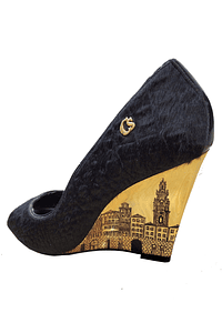 original handmade illustration on high heel shoe.