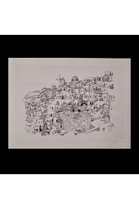 Urban illustration on 100% cotton Fine Art radiant White paper with manual application of gold leaf, signed and with white stamp. * Frame not included
