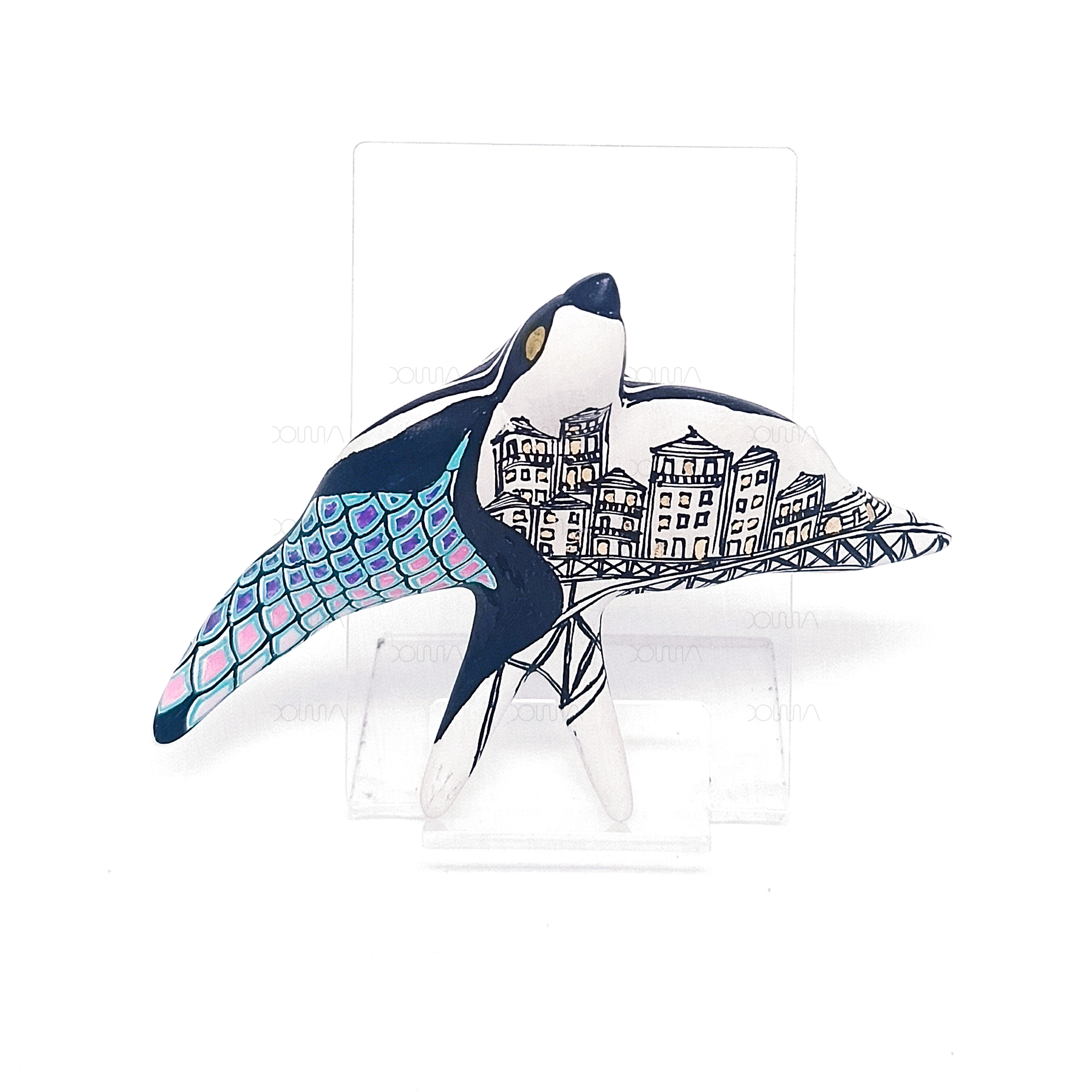 Ceramic swallow with original illustration on acrylic base